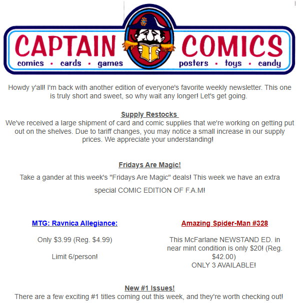 Comments Off on Supply Restocks, New #1s, and More!