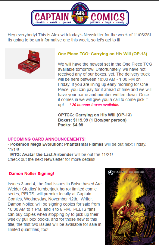 Comments Off on Newsletter: 11/6/25 TMNT x Godzilla #1, New One Piece TCG, Pokemon Updates and More!