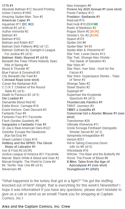 Comments Off on Newsletter: 11/26/25 Happy Thanksgiving!